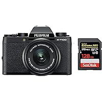Fujifilm X Series X-T100 24.2MP Mirrorless Camera (Black) with XC15-45mm Lens Kit + SanDisk 128GB Extreme Pro SDXC UHS-I Card - C10, U3, V30, 4K UHD, SD Card